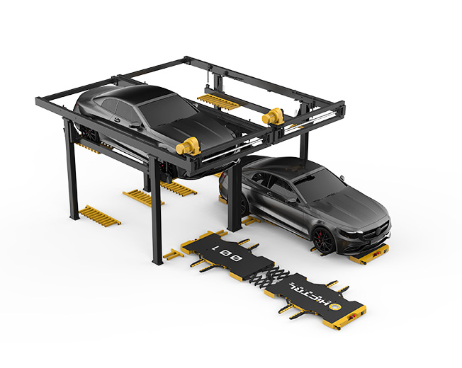 梳齒二層簡易升降智能設(shè)備是專門針對自主研發(fā)的夾持式停車機器人系統(tǒng)相配套而研發(fā)的停車設(shè)備。該設(shè)備有效利用上下兩層空間,由主體框架、提升驅(qū)動、左右梳齒架組成,在調(diào)度系統(tǒng)的控制下,夾持式停車機器人將車輛搬運至設(shè)備梳齒架上,左右梳齒架將車輛提升至第二層,設(shè)備底層可再停一輛車。不僅可以提升車位數(shù)量,更可以對傳統(tǒng)的兩層升降橫移或簡易升降等類型車庫做智能化升級,實現(xiàn)無人智能化停取車。