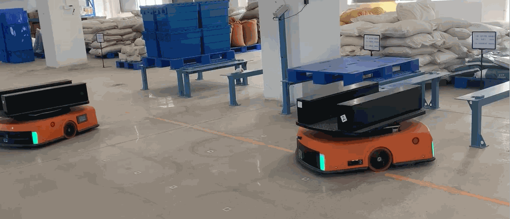 螞蟻AGV與梅花樁接駁臺(tái)對(duì)接的通道狹窄,左右兩邊僅5mm,對(duì)接精準(zhǔn),舉升平穩(wěn),實(shí)現(xiàn)高效搬運(yùn)的同時(shí),為客戶節(jié)省場(chǎng)地面積。