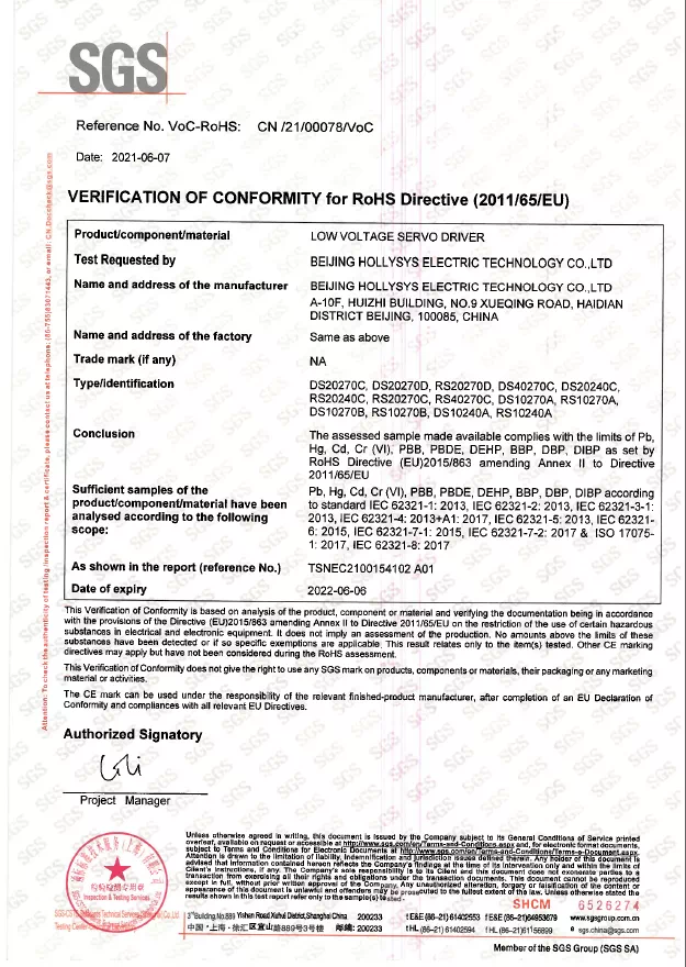 SGS是全球領(lǐng)先的檢驗(yàn)、鑒定、測(cè)試和認(rèn)證機(jī)構(gòu),是全球公認(rèn)的質(zhì)量和誠(chéng)信基準(zhǔn)。SGS作為國(guó)際權(quán)威認(rèn)證機(jī)構(gòu)為和利時(shí)電機(jī)產(chǎn)品頒發(fā)CE證書(shū)和RoHS證書(shū),是對(duì)和利時(shí)電機(jī)技術(shù)實(shí)力的專業(yè)背書(shū),增強(qiáng)了和利時(shí)電機(jī)產(chǎn)品在國(guó)際市場(chǎng)的品牌力,也助力設(shè)備制造商加速全球化步伐。