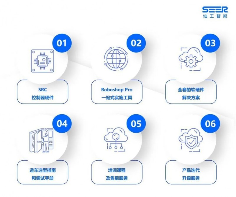 為了幫助客戶更輕松地實現(xiàn)打造 AMR 的需求,仙工能為客戶提供全套方案支持,方案中不僅是一臺 SRC 控制器,而且是涵蓋硬件、軟件、造車技術(shù)方案、選型及調(diào)試手冊、培訓(xùn)及服務(wù)等全套技術(shù)服務(wù),消除一切造 AMR 的障礙。