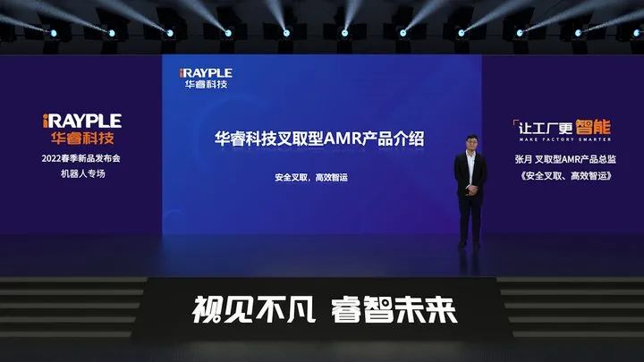 華睿科技叉取型AMR產(chǎn)品總監(jiān)張?jiān)略诒敬伟l(fā)布會(huì)上帶來了“安全叉取,高效智運(yùn)”為主題的新產(chǎn)品介紹。他表示“隨著叉車無人化率的不斷提升,托盤和物料的無人化轉(zhuǎn)運(yùn)場景越來越多樣化。為了更好的適應(yīng)場景多樣化,提高倉庫容積率和運(yùn)行安全。全新推出的窄通道堆高式叉取AMR,在取貨通道,安全防護(hù),智能感知等方面全面升級(jí)。成熟應(yīng)用于鋰電、包裝、3C等行業(yè)的物料搬運(yùn)及堆高場景。在安全性,穩(wěn)定性,高效率等方面得到了多場景的驗(yàn)證。”