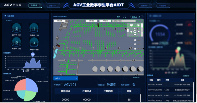 然而,小A的故事還沒有結(jié)束。基于艾吉威免費贈送的數(shù)字化工廠AIDT(艾吉威工業(yè)數(shù)字孿生)平臺,小A可以做一些維護保養(yǎng)的事項。該平臺可采集每輛小千斤的所有信息,包括故障、速度、電量、任務(wù)等,可實現(xiàn)對所有機器人產(chǎn)品的實時監(jiān)控與故障排查,真正實現(xiàn)小千斤產(chǎn)品的遠(yuǎn)程運維。