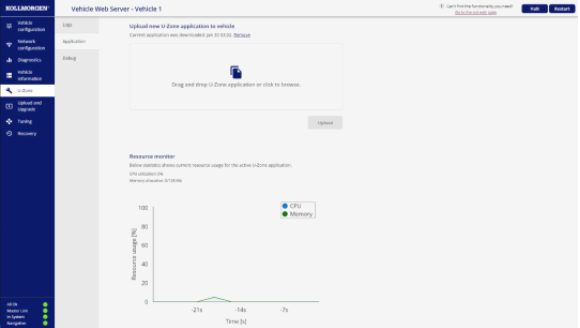 portant; overflow-wrap: break-word !important;">02 我們還在新的車輛網(wǎng)頁(yè)界面里添加了U-Zone菜單,以便您上傳和監(jiān)控使用U-Zone的應(yīng)用程序。您也可以通過(guò)資源監(jiān)視器查看U-Zone應(yīng)用程序的CPU功率和內(nèi)存使用情況。