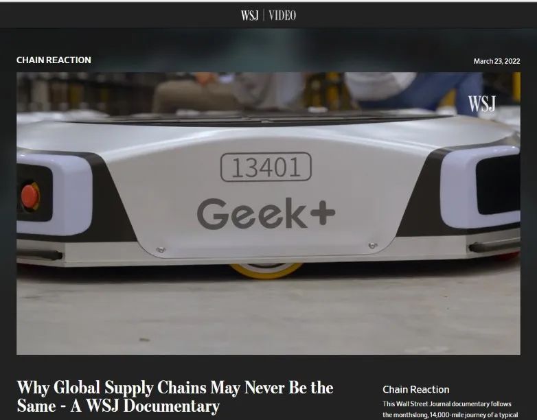 近日,國際著名商業(yè)財經(jīng)媒體The Wall Street Journal (華爾街日報) 聚焦全球供應(yīng)鏈的復(fù)雜世界,推出紀(jì)錄片《全球供應(yīng)鏈為何不復(fù)從前》。全球AMR引領(lǐng)者極智嘉(Geek+)驚艷亮相,向全世界展示了AMR機(jī)器人如何在全球供應(yīng)鏈智能化轉(zhuǎn)型升級中發(fā)揮重要作用,助力企業(yè)提高供應(yīng)鏈反脆弱能力,保持市場核心競爭力。