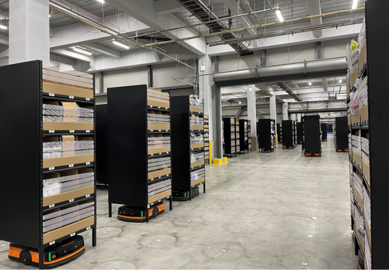 2021年,海康機器人助力日本知名服裝集團應對海量訂單,迎戰換季痛點。在11000㎡的智能倉庫,共同部署181臺智能移動機器人。雙排貨架密集存儲,額外拓展10%的庫容。“貨到人”作業模式,節省占總工時40%的無效行走,員工只需在工作站操作即可完成貨品揀選、上架等,大幅提升工作效率。項目實現了各類單品的高效、精準管理和調撥。