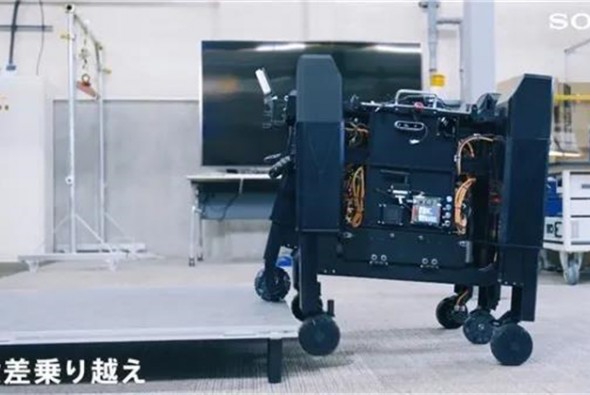 該機(jī)器人腿部結(jié)構(gòu)由六個裝有輪子的驅(qū)動器組成,機(jī)器人在平地上使用輪子,而在樓梯等有高度差的地方則使用輪子和腿來上下移動...