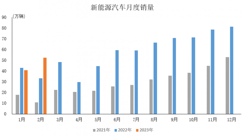 2023年1-2月,新能源汽車產(chǎn)銷分別完成97.7萬輛和93.3萬輛,同比分別增長18.1%和20.8%,市場占有率達(dá)到25.7%。從汽車行業(yè)發(fā)展趨勢來看,新能源汽車的增長速度未來會(huì)進(jìn)一步加快。