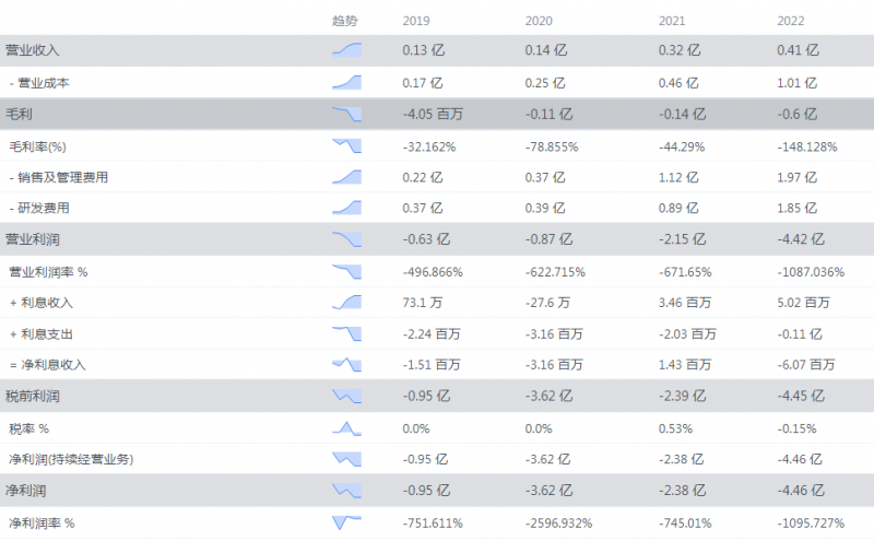 原始財報數(shù)據(jù)顯示,Luminar在2022年實現(xiàn)營收0.41億美元,對比2021年有所增長,但增幅不大。全年凈虧損達4.42億美元,較2021年同期翻倍。