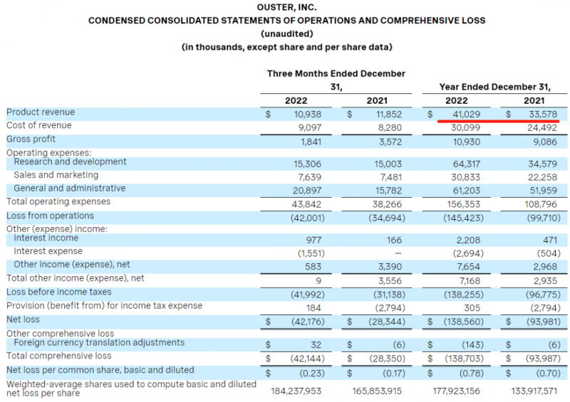 從原始財務(wù)報表全年數(shù)據(jù)看,Cepton在2022年全年實現(xiàn)營收743萬美元。全年凈虧損為0.61億美元。