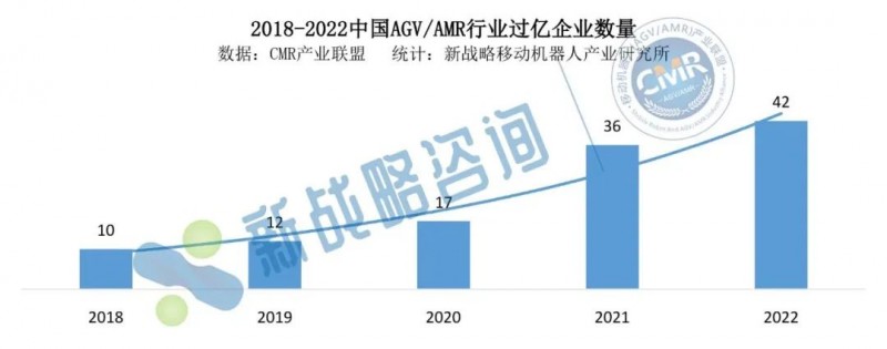 2022年度,中國市場(chǎng)AGV/AMR企業(yè)銷售額過億元的企業(yè)約42家,與2021年度的36家相比,新增了6家企業(yè)。