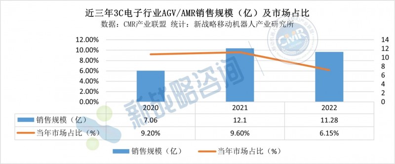 圖表:近三年3C電子行業(yè)AGV/AMR銷售規(guī)模(億)及市場占比