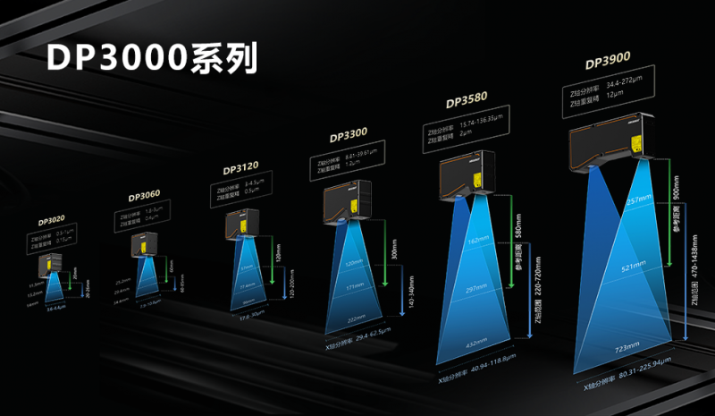 DP3000系列推出六款型號,輪廓點數(shù)升級為3200點,最高檢測頻率提升到19KHz,在超高精度測量方向,進一步擴充了DP3020型號,覆蓋11.5-14mm的X軸寬度,實現(xiàn)0.15um的Z軸重復精度,同時DP3300和DP3580兩個版本同樣支持紅藍光兩個版本選配。