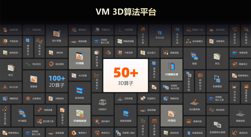 軟件繼承了原有的2D視覺算法模塊,集成機器視覺多種算法組件,實現(xiàn)2D和3D視覺檢測方案的整合。