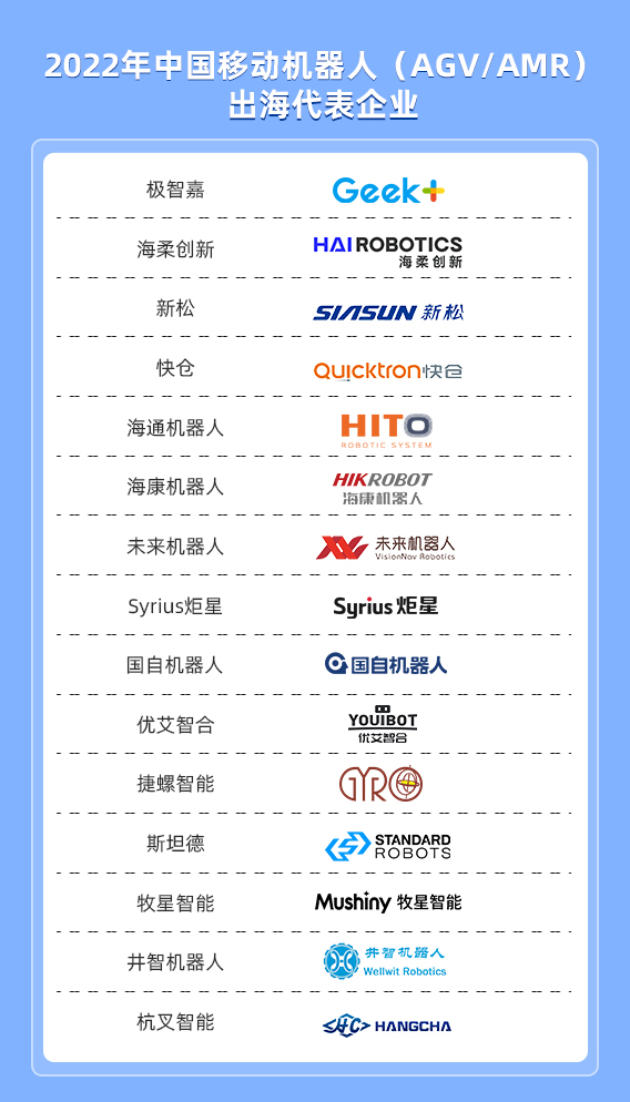 從2019年中國AGV/AMR海外銷售額首次突破10億人民幣到2022年的36億人民幣,不少企業的海外銷售占比得到較大提升,這也表明走向國際市場成為行業發展趨勢,同時中國企業的產品在全球市場的影響力逐步提升。