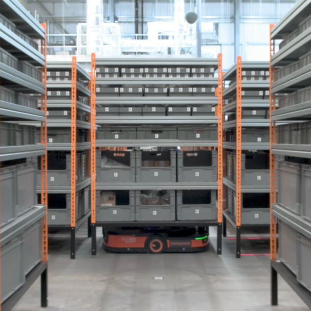 Farsound定制了多種貨架來滿足不同種類零部件的搬運需求;同時,??禉C器人LMR可實現(xiàn)貨架的柔性適配。