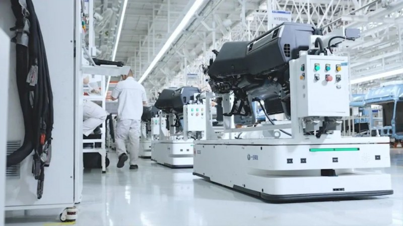 “縱觀整個(gè)工廠,底盤裝配、整車裝配等線體全部采用工位可變、布局可調(diào)的線體AMR,顯著提升生產(chǎn)線的柔性化水平,靈活性更高,降低異常停線時(shí)間,物流作業(yè)效率提升55%。