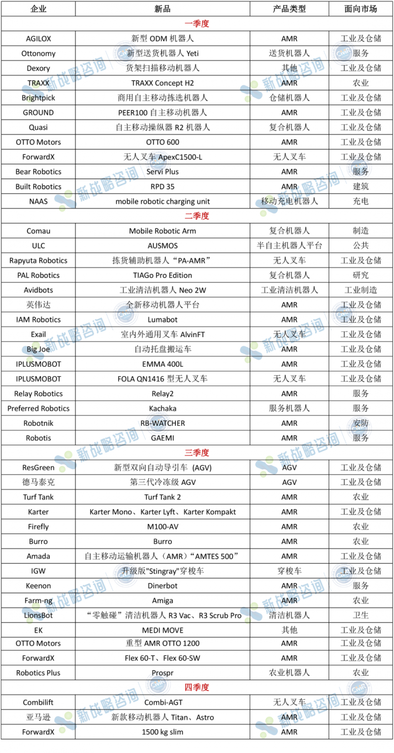 表:2023年國外移動機器人新產品(根據公開信息整理,如有遺漏,請指正?。?/span>