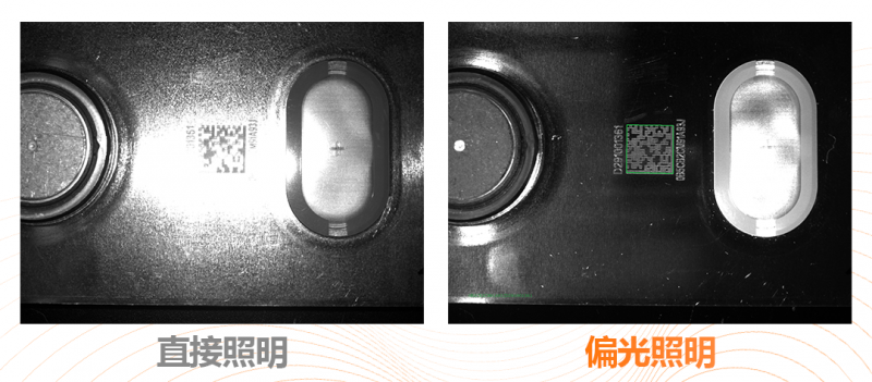 1.刻印深度淺,對比度極低:復合光源配合特殊打光角度,提升條碼對比度;