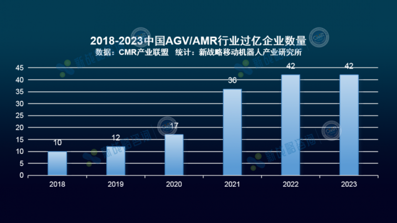 圖表:2018-2023中國(guó)AGV/AMR行業(yè)過(guò)億企業(yè)數(shù)量