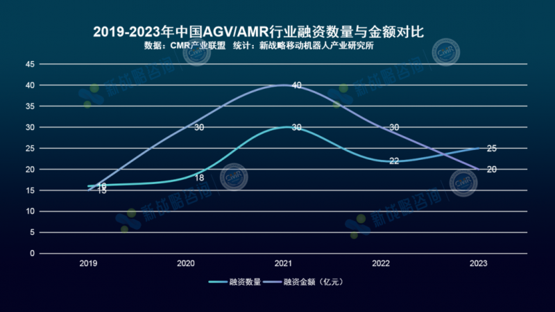 圖表:2019-2023年中國(guó)AGV/AMR行業(yè)融資數(shù)量與金額對(duì)比
