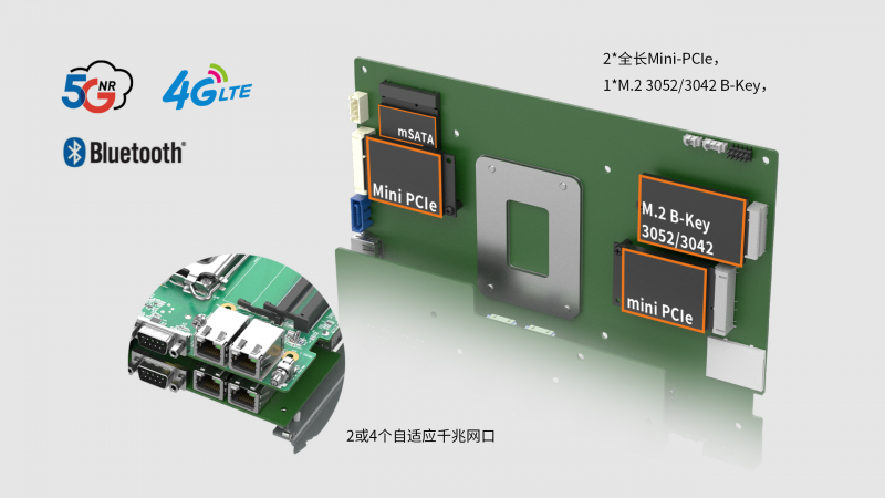 ² 1*M.2 3052/3042 B-Key,帶SIM卡槽,帶PCIeX1和USB2.0信號,支持5G NR模塊