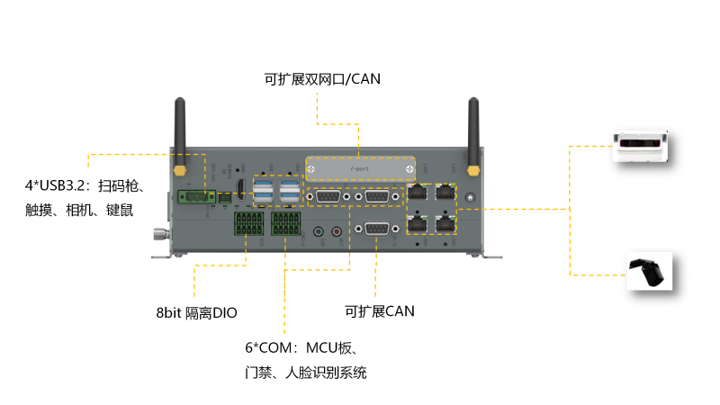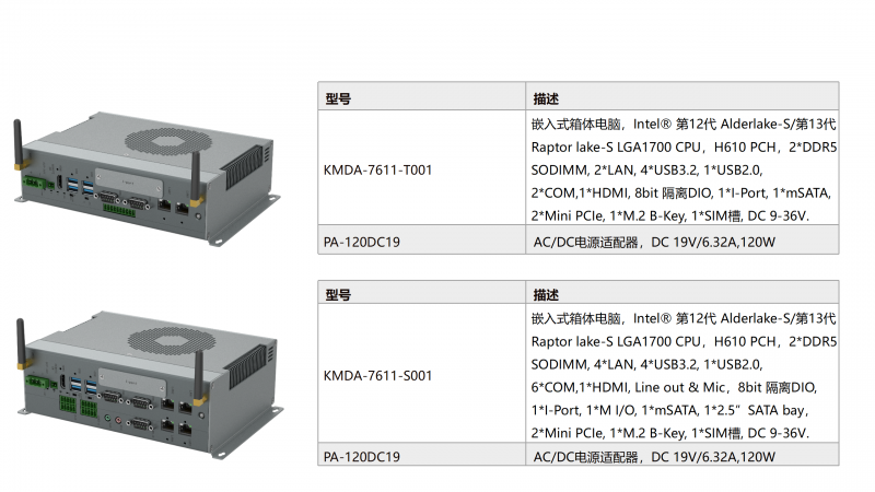 KMDA-7611是一款高性能箱體電腦,采用H610芯片組,搭載Intel®第12代Alder lake-S/第13代Raptor lake-S系列處理器,IO功能完整,體積大小適中,適用于無人叉車、機器視覺和工業(yè)控制等行業(yè)和領(lǐng)域。