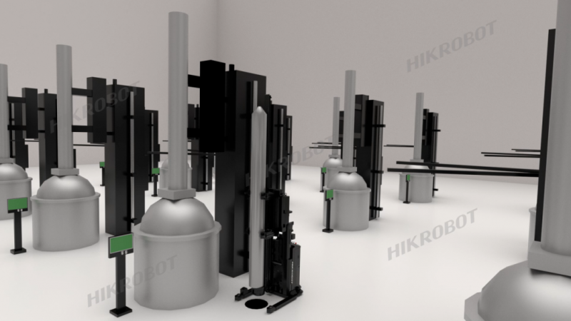 為應對這些挑戰,海康機器人設計了一套全自動化解決方案,涵蓋硅料自動添加、料品自動轉運、晶棒無人化提取與冷卻處理、截斷機對接、開方、磨削等后續工序的物料自動轉運,乃至廢料處理的自動化流程。方案緊密匹配各生產環節,有效提升工作效率并解決行業難題。