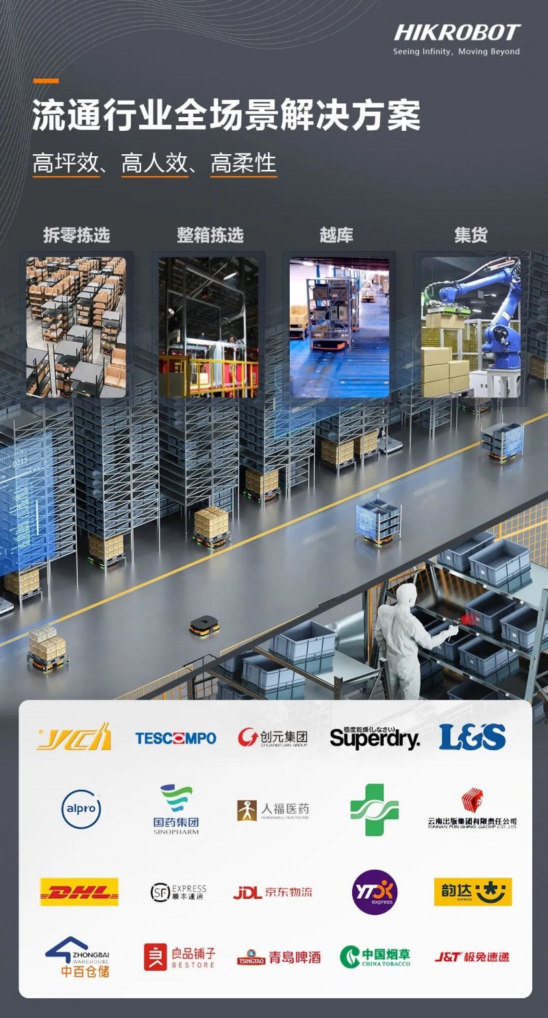 針對流通行業的業務波動量大、效率要求高、業務容錯率低、庫容要求高等核心難題,結合豐富的產品線和解決方案、智能算法等全場景規劃能力,??禉C器人為行業伙伴打造了高坪效、高人效、高柔性的解決方案,覆蓋電商零售、鞋服、煙草酒水、商超、圖書出版、3PL、醫藥等細分行業。