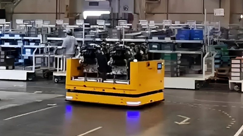 某華南汽車制造企業(yè),車間環(huán)境空曠,周邊擺滿周轉(zhuǎn)料車,且人車混流,廠房內(nèi)零部件堆放變化大,屬于典型的高動態(tài)環(huán)境,傳統(tǒng)2D激光雷達定位十分困難。為滿足該場景需求,采用邁爾微視SLAM導航定位方案,將傳感器安裝于大型輥筒搬運AMR上端,負責運輸發(fā)動機部件,提高機器人定位的穩(wěn)定性。