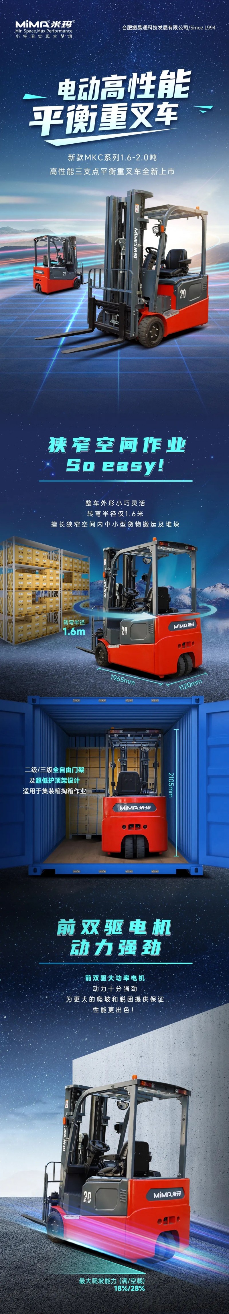狹窄空間作業超City! MiMA米瑪1.6-2.0噸高性能三支點平衡重叉車全新上市!
