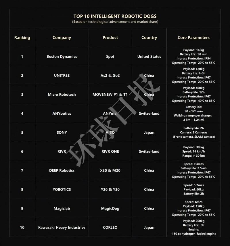 核心提示:近日,《環球日報》發布世界十大智能機器狗榜單。