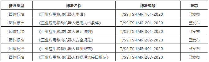 圖表:移動機(jī)器人產(chǎn)業(yè)聯(lián)盟制定的6項團(tuán)體標(biāo)準(zhǔn)