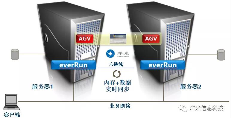 洋米系統軟件everRun Enterprise在該科技有限公司現有的兩臺相同配置的服務器上實現容錯,無需任何多余硬件,就能達到零秒切換,當一臺主機發生故障時,另外一臺主機能自動接管業務,期間業務不會中斷且數據不會丟失。系統實施后,能夠以簡單實惠的方式使應用程序始終正常運行,可確保業務持續性并保持數據完整性,提高業務系統的高可用性。