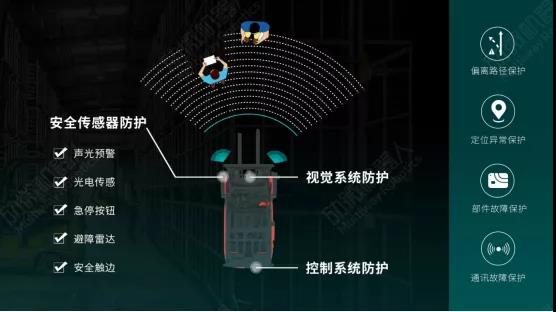 平衡重式無(wú)人叉車MW-E系列安全系統(tǒng)采用安全傳感器、算法控制系統(tǒng)、視覺系統(tǒng)等多重防護(hù)去提升車輛安全,即從人體工程學(xué)等多方面去考慮人機(jī)交互場(chǎng)景的安全性,又從無(wú)人叉車系統(tǒng)、機(jī)械等方面去考慮,360°全方位立體防護(hù),讓無(wú)人叉車作業(yè)安全更具保障。
