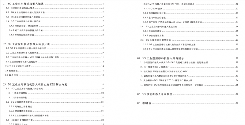 本藍(lán)皮書從5G工業(yè)應(yīng)用移動(dòng)機(jī)器人的發(fā)展背景出發(fā),給出5G工業(yè)應(yīng)用移動(dòng)機(jī)器人的定義和價(jià)值,分析各種應(yīng)用場景對(duì)網(wǎng)絡(luò)的需求,從架構(gòu)、網(wǎng)絡(luò)、終端提出5G工業(yè)應(yīng)用移動(dòng)機(jī)器人可落地的解決方案,闡述可靠性能力,并給出各個(gè)應(yīng)用場景落地實(shí)施的建議,幫助產(chǎn)業(yè)鏈各方共同推進(jìn) 5G 智慧物流發(fā)展。