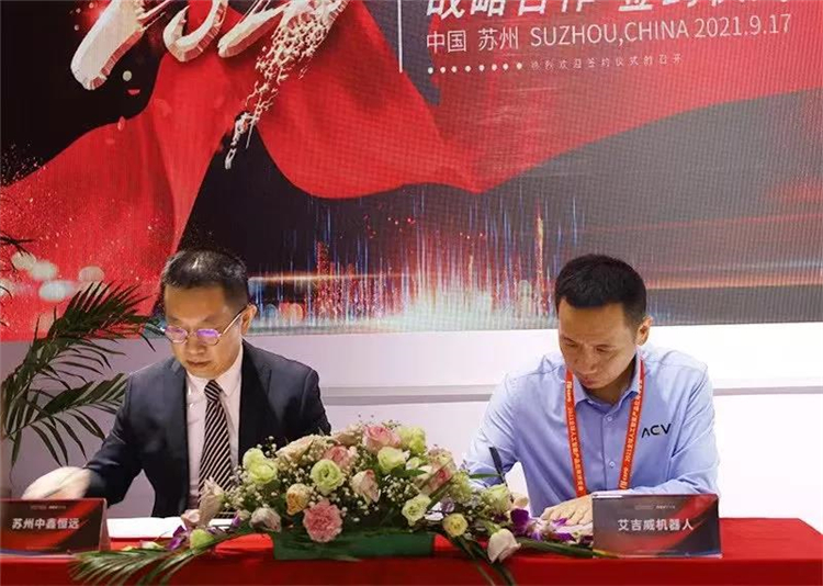 9月17日,蘇州艾吉威機(jī)器人有限公司(以下簡(jiǎn)稱“艾吉威”)在2021全球人工智能產(chǎn)品應(yīng)用博覽會(huì)現(xiàn)場(chǎng)完成新一輪融資簽約。在蘇州政府領(lǐng)導(dǎo)、企業(yè)合作伙伴、各行業(yè)精英代表及知名媒體的共同見證下,本輪投資方華鑫證券與中鑫資本代表孔勇軍先生、官子安先生,艾吉威機(jī)器人創(chuàng)始人劉勝明先生、聯(lián)合創(chuàng)始人司秀芬博士出席簽約儀式并鑒約。