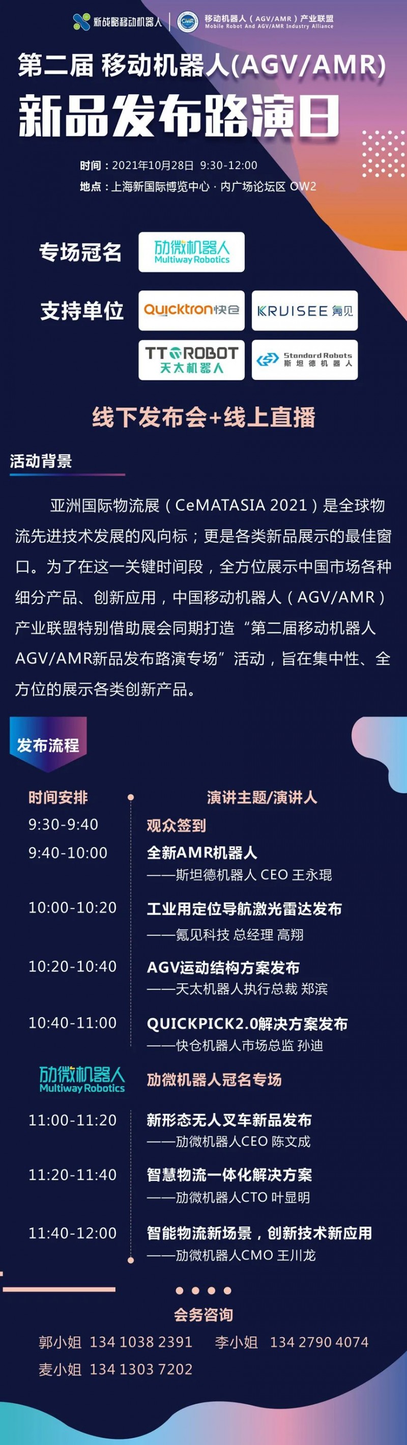 核心提示:10.28日移動機器人(AGV/AMR)新品發布路演日