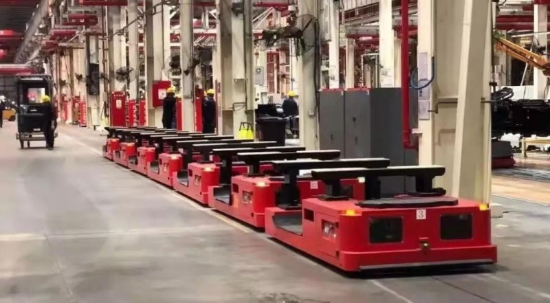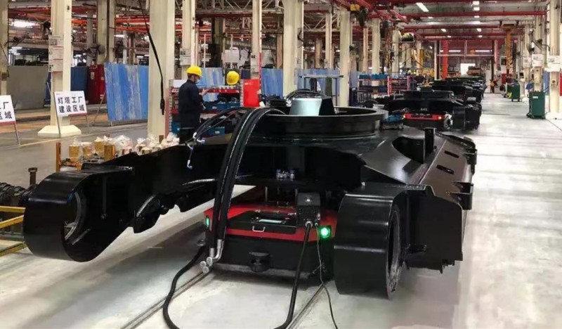 25臺(tái)重載AGV——國自助力某大型挖掘機(jī)工廠打造柔性產(chǎn)線!