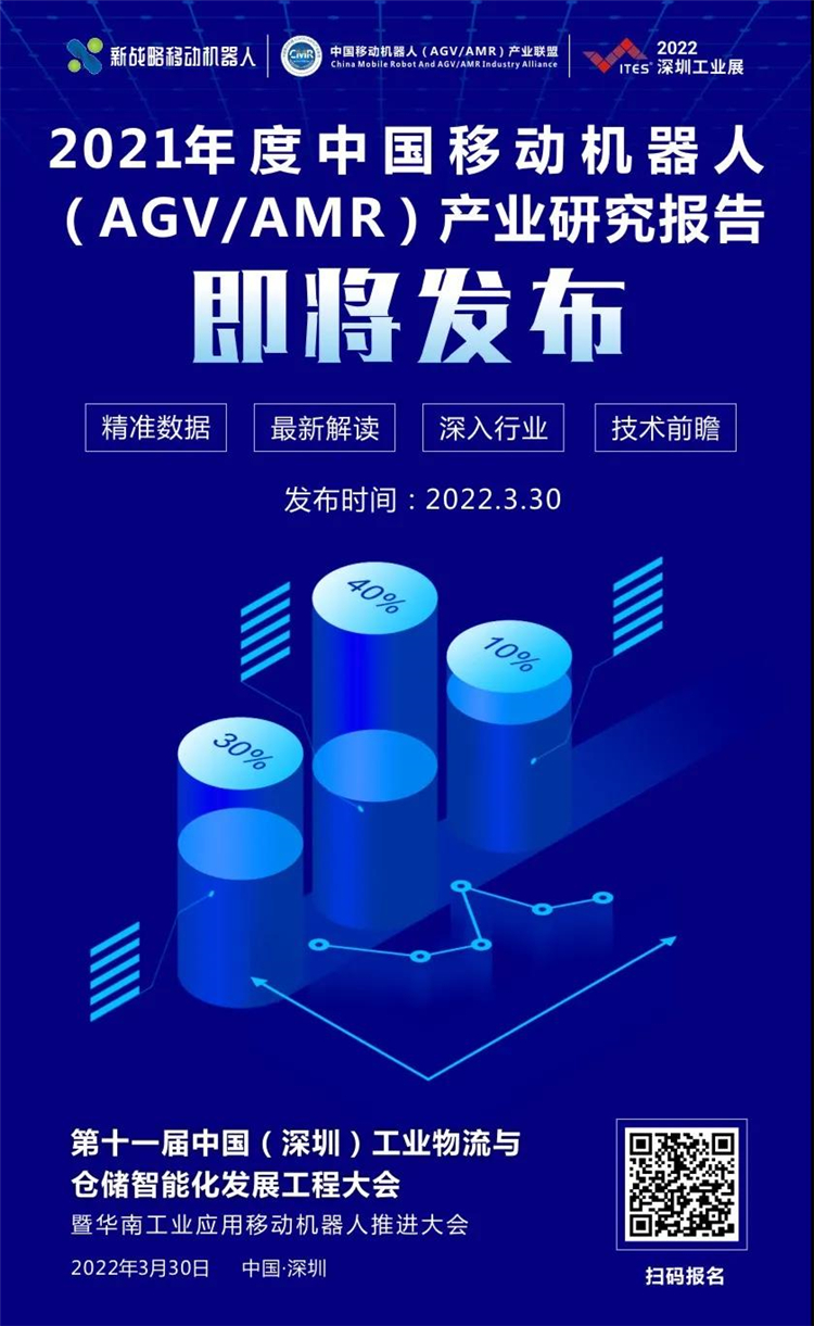 2022年3月30日,在由中國(guó)移動(dòng)機(jī)器人(AGV/AMR)產(chǎn)業(yè)聯(lián)盟舉辦的《中國(guó)(深圳)工業(yè)物流與倉(cāng)儲(chǔ)智能化發(fā)展工程大會(huì)暨華南工業(yè)應(yīng)用移動(dòng)機(jī)器人推進(jìn)大會(huì)》上,《2021年度中國(guó)工業(yè)應(yīng)用移動(dòng)機(jī)器人(AGV/AMR)產(chǎn)業(yè)發(fā)展研究報(bào)告》將正式對(duì)外發(fā)布,敬請(qǐng)期待!