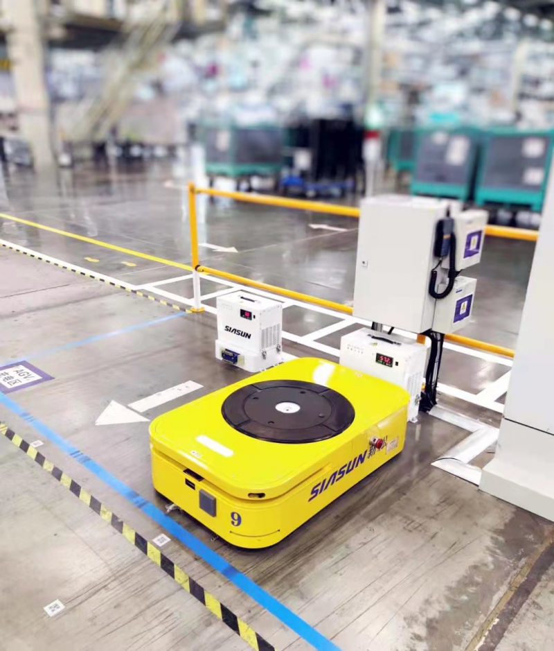 2019年新松機(jī)器人為國內(nèi)某知名車企在總裝車間的儀表線、電池線、門段揀選線等產(chǎn)線提供數(shù)十臺(tái)物流配送AGV。項(xiàng)目在實(shí)施過程中,原定選用的是激光SLAM導(dǎo)航,由于部分生產(chǎn)線邊特征點(diǎn)不明顯,環(huán)境特征變化太多,導(dǎo)致SLAM導(dǎo)航精度不高,定位不準(zhǔn),影響了使用效率。經(jīng)過分析后,新松輔以紋理導(dǎo)航解決了因局部區(qū)域特征變化較大而產(chǎn)生的問題。在特殊路段,通過對(duì)現(xiàn)場(chǎng)地面紋理的拍攝,與AGV本體已有紋理模型構(gòu)圖進(jìn)行比對(duì),從而確定精確位置,提高了現(xiàn)場(chǎng)的導(dǎo)航精度和定位精度,滿足了客戶的使用效率要求。