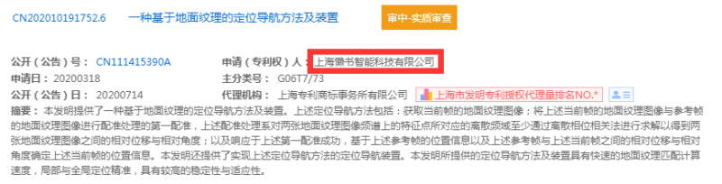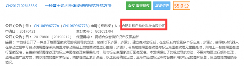 新戰(zhàn)略移動(dòng)機(jī)器人產(chǎn)業(yè)研究所通過專利檢索發(fā)現(xiàn),目前該導(dǎo)航方式為發(fā)明專利,主要專利人為合肥井松自動(dòng)化科技有限公司與上海懶書智能科技有限公司所有,發(fā)明人均為劉詩聰。