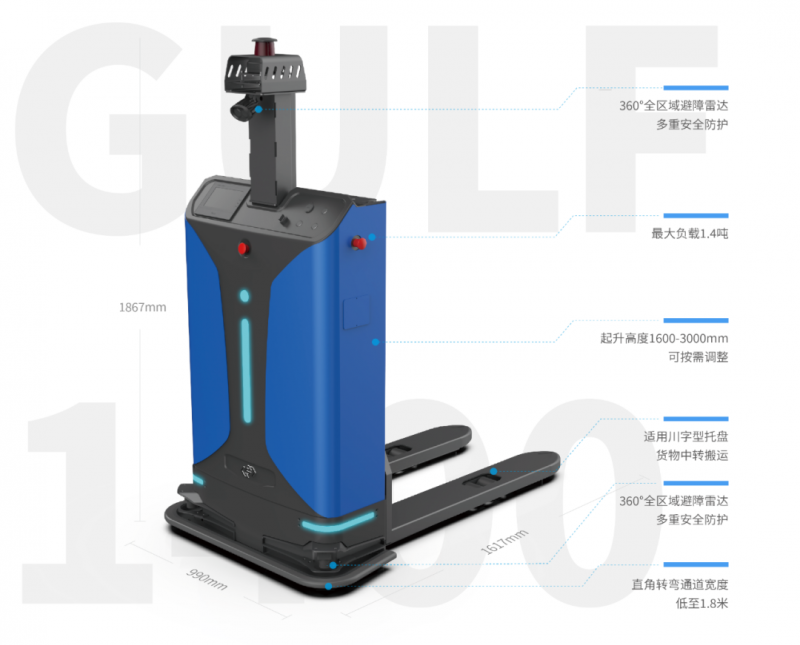 此外,Gulf-1400-CDD無人叉車搭載無線對接模塊,可以對接車間內(nèi)的自動門,達到自動開關(guān)的效果,實現(xiàn)跨場景高效搬運。
